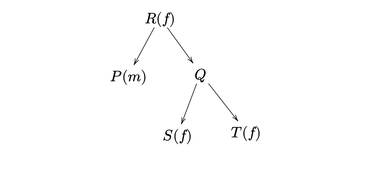 Consider the relationships among P, Q, R, S, and T: