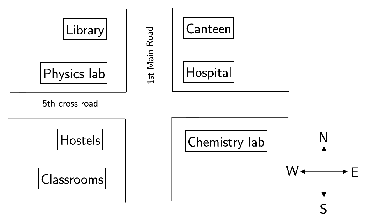 The chemistry lab is to the southeast of physics lab.